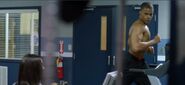 The following day at Garfield, he was on the treadmill working out when he was interrupted by a very drunk Jennifer. Upon seeing her drunk, he snatched the bottle from Jennifer and threw it into the trash. He told her about how he's lived a hard life, but his skills in track will lead out of Freeland. He told her that he wants her to come with him, but not the way she is behaving.[2]